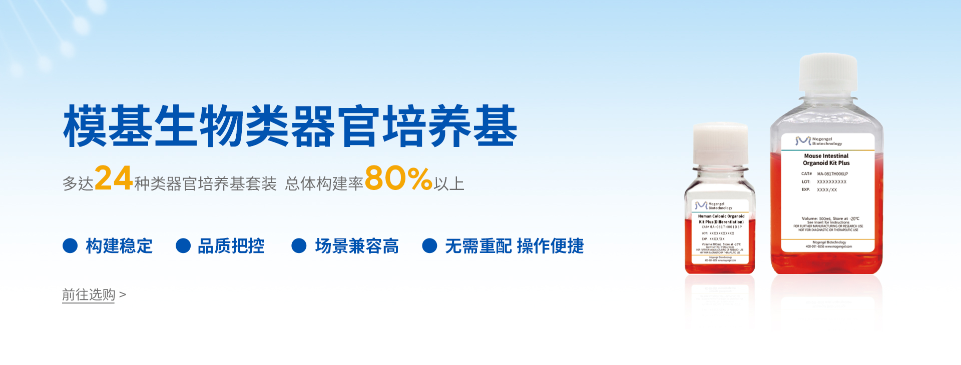 廈門?;锟萍加邢薰局铝τ?D細(xì)胞培養(yǎng)核心原材料的研發(fā)與產(chǎn)業(yè)化升級,是國內(nèi)一家從科研做起,從實(shí)驗(yàn)研究中一路走來的全流程自主研發(fā)、自主生產(chǎn)的企業(yè)。目前公司的產(chǎn)品有基質(zhì)膠、類器官培養(yǎng)基、細(xì)胞因子、3D細(xì)胞培養(yǎng)耗材、3D細(xì)胞培養(yǎng)智能顯微鏡等。公司擁有4大技術(shù)研發(fā)中心:分子克隆和細(xì)胞編輯中心、實(shí)驗(yàn)動(dòng)物中心、蛋白表達(dá)和純化平臺、類器官質(zhì)檢系統(tǒng)和自動(dòng)化。
